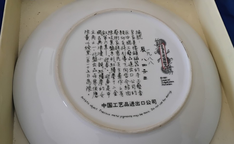 Hashtags: #ChinesePorcelain #Jingdezhen #Yuanchun #RedMansion #CollectorPlate #ChineseArt #ImperialChina #VintageChina #ChineseExport #OrientalArt #AsianCollectibles #PorcelainArt #1987 #TraditionalArt #AuctionFinds #EstateSale #DecorativePlate #OrientalDecor #CulturalArt #BeautiesSeries