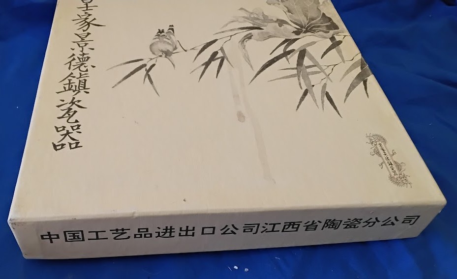 Description: Authentic 10-inch Jingdezhen porcelain collector plate featuring Yuan-chun from Beauties of the Red Mansion series. Magnificent hand-painted scene depicts elegant Chinese beauty in flowing robes of green, blue, and cream standing in opulent interior setting. Richly detailed with ornate carved furniture, potted plants, pink drapery, decorative screens, and traditional architectural elements. Exquisite artistry shows floral arrangements and intricate wood carvings. Traditional Chinese calligraphy and red seal stamp. Decorative blue geometric border pattern. Made by China National Arts & Crafts Import & Export Corporation, Jiangxi Ceramics Branch. Dated 1987. Comes in original presentation box with bamboo and birds ink brush artwork on lid. Jingdezhen is China’s legendary “Porcelain Capital” with 1,700+ year tradition. Museum-quality hand-painted porcelain with precious metal pigments. Excellent condition. Complete with original packaging.