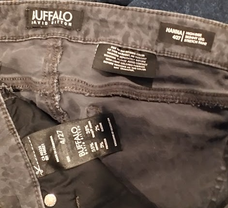 Hashtags: #BuffaloDavidBitton #HannaSkinny #HighRisePants #SkinnyJeans #AnimalPrint #BuffaloJeans #GreyDenim #FashionAuction #Size4Pants #StretchDenim