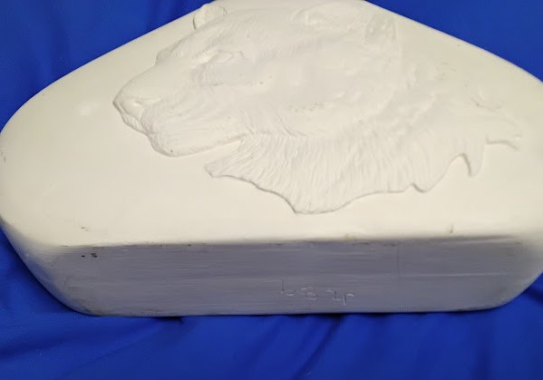 Ceramic Cougar Head Relief Vase Bottle White Bisque