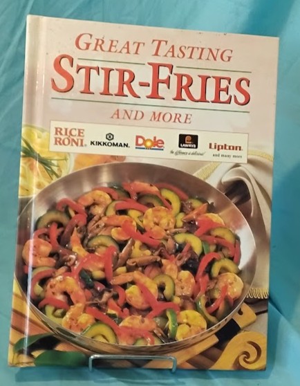 Great Tasting Stir-Fries and More published by Publications International, Ltd. Features recipes from America’s best-loved brand name food companies including Rice-A-Roni, Kikkoman, Dole, Lindsay Olives, and Lipton. Makes stir-frying in your own kitchen easier than ordering takeout! Choose a different stir-fry every time from savory Teriyaki Beef and zingy Lemon Chicken Herb Stir-Fry to uncommonly good Orange Almond Scallops. Includes dozens of flavorful recipes combining Asian-inspired techniques with accessible ingredients. Features curry and Chinese classics alongside creative new combinations. Perfect for quick weeknight dinners and healthy cooking. Good condition hardcover.