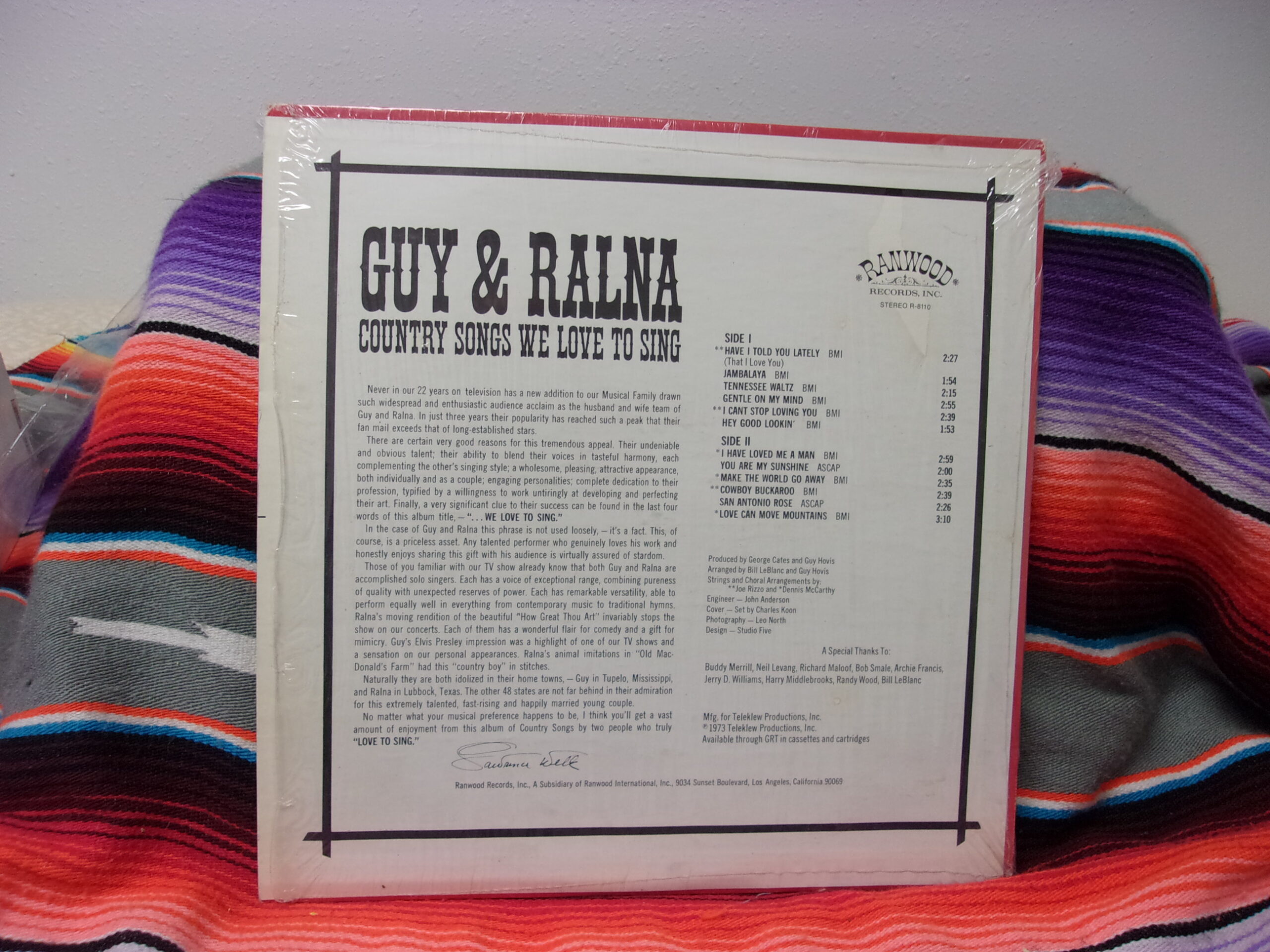 Up for sale is a vintage vinyl LP by Guy & Ralna titled “Country Songs We Love To Sing” (R-8110), in stereo. This is a great find for any collector of classic country music or fans of Guy & Ralna.