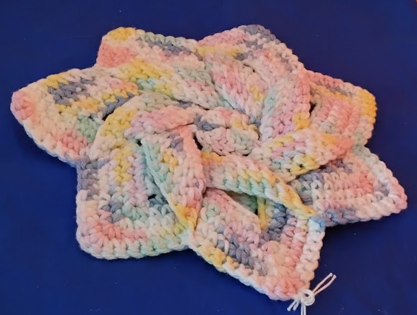 Hashtags: #CrochetHotPad #HandmadeCrochet #PastelRainbow #KitchenLinens #Trivet #HandcraftedGift #CrochetDecor #PastelDecor #KitchenAccessories #StarShaped