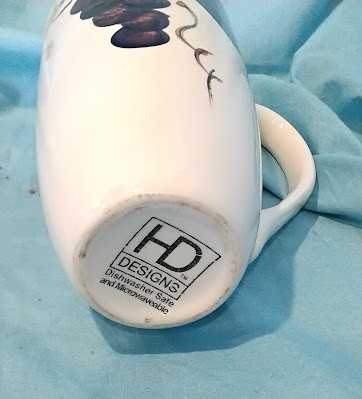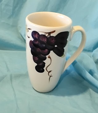 Description: Set of three tall ceramic mugs by HD Designs featuring hand-painted grape cluster designs.