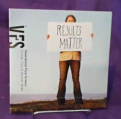 DVD featuring “Results Matter” – a student demo reel compilation from Vancouver Film School (VFS). This promotional disc showcases student projects and work from VFS programs, highlighting the school’s entertainment arts training in areas like film, animation, and digital media. Includes school information and program details.