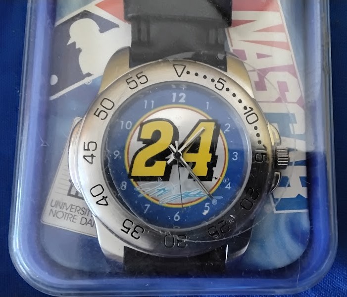 Hashtags: #JeffGordon #Number24 #NASCARWatch #JeffGordonCollectible #NASCARMemorabilia #VintageNASCAR #SportsWatch #RacingCollectible #NASCARMerch #NewInPackage #90sNASCAR #GordonFan #NASCARLegend #CollectibleWatch #RacingWatch