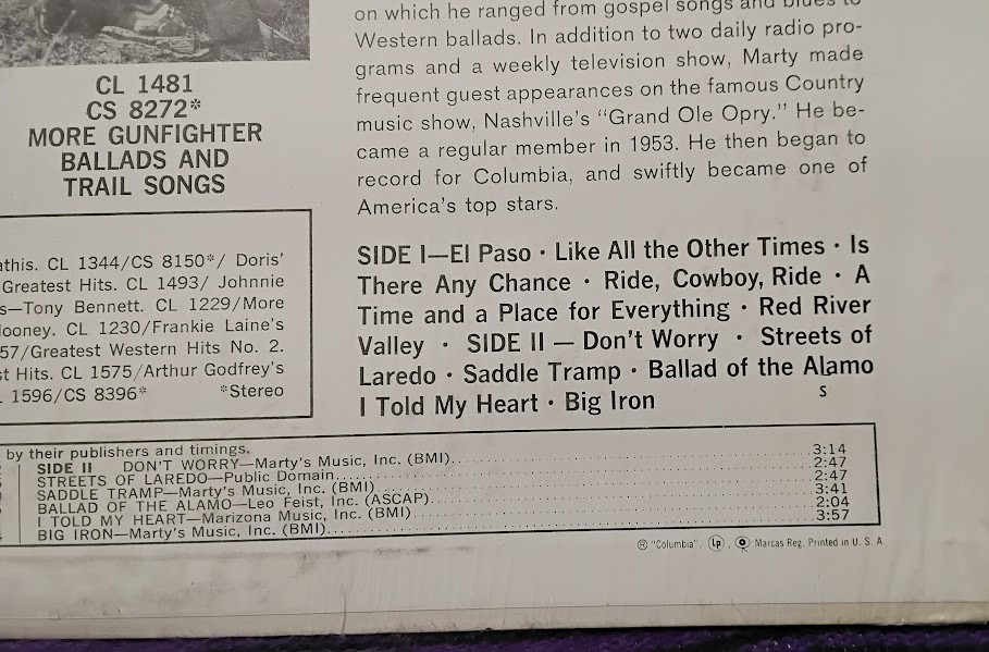 MARTY ROBBINS ~ More Greatest Hits ~ CS 8435 ~ 1971