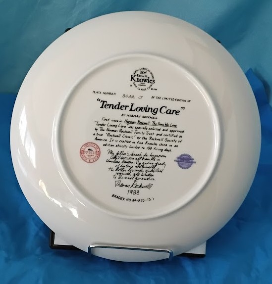 Description: Norman Rockwell “Tender Loving Care” limited edition collector plate by Edwin M. Knowles China Company, 1988.