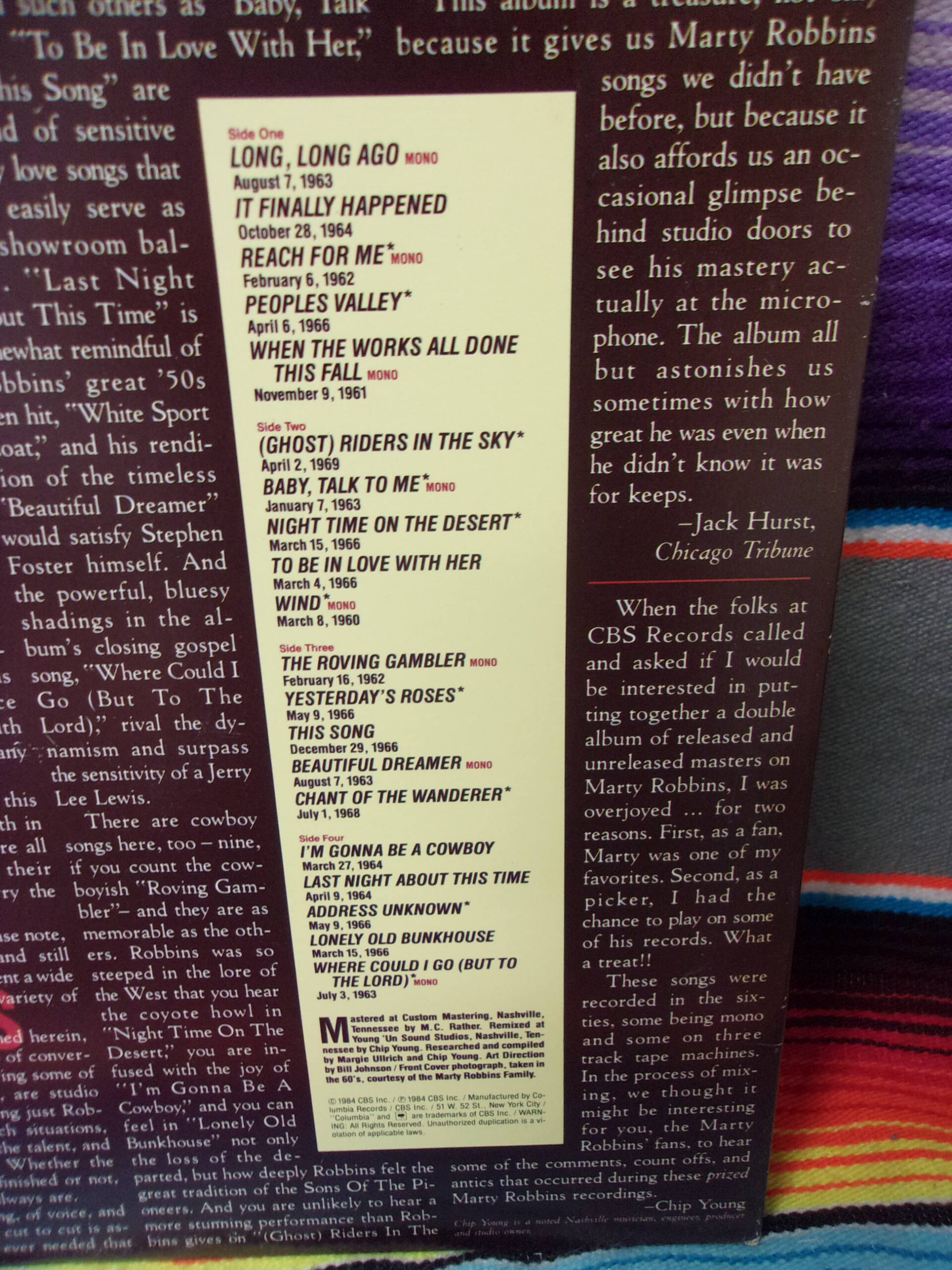 Original Marty Robbins Long, Long Ago 1984 Vinyl Record Album KC 39575 Columbia