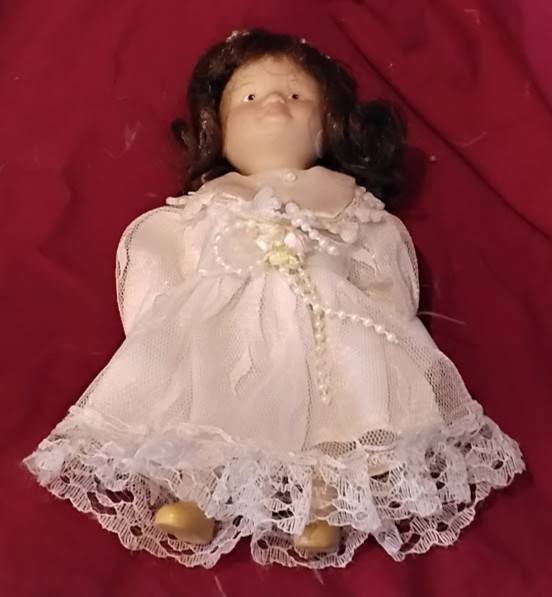 Hashtags: #PorcelainDoll #BabyDoll #VintageDoll #CollectorDoll #LaceDress #DollCollector #SittingDoll #WhiteDress #VintageToys #NurseryDecor #CollectibleDoll #DollCollection