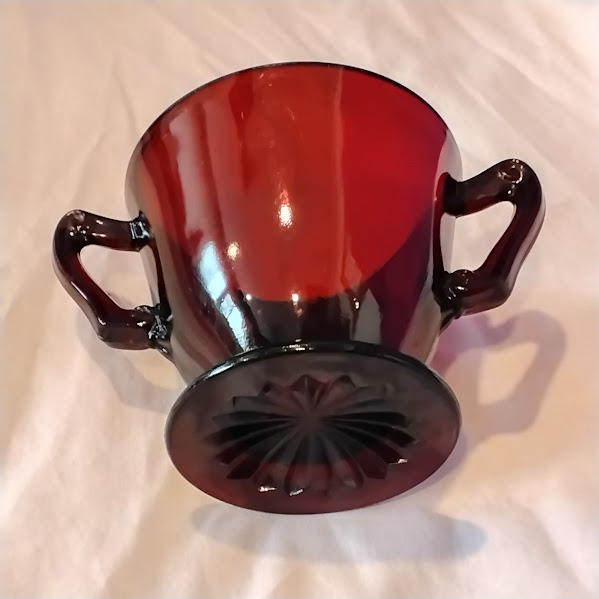 Ruby Red Glass Sugar Bowl Vintage Cranberry Glass Footed