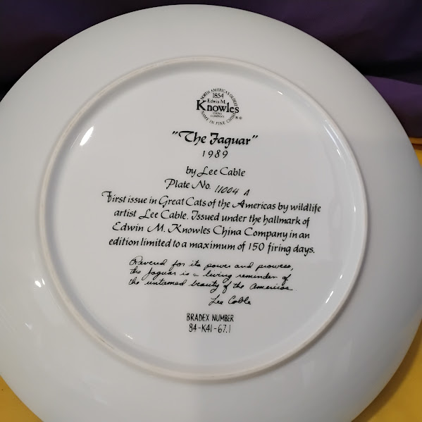 #CollectorPlate #TheJaguar #LeeCable #KnowlesChina #WildlifeArt #LimitedEdition #BigCats #VintagePlate #KnowlesCollector #Bradex