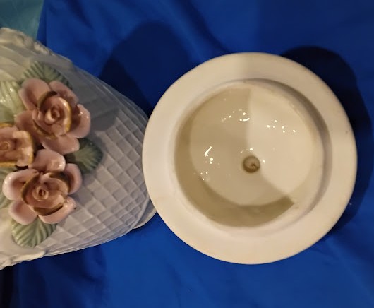 Lid: Fits securely and matches the floral pattern of the base perfectly.