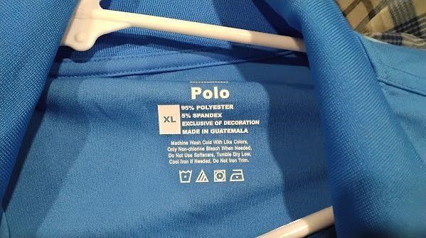 This is an authentic Walmart associate uniform polo shirt in a vibrant medium blue. The shirt features the iconic yellow Walmart “spark” logo embroidered on the left chest. Designed for comfort during long shifts, the fabric is a performance blend of 95% Polyester and 5% Spandex, providing both durability and a slight stretch. It includes a classic three-button placket and a ribbed collar. This garment was made in Guatemala and is machine washable. It appears to be in good used condition with no major stains or snags visible in the photos.