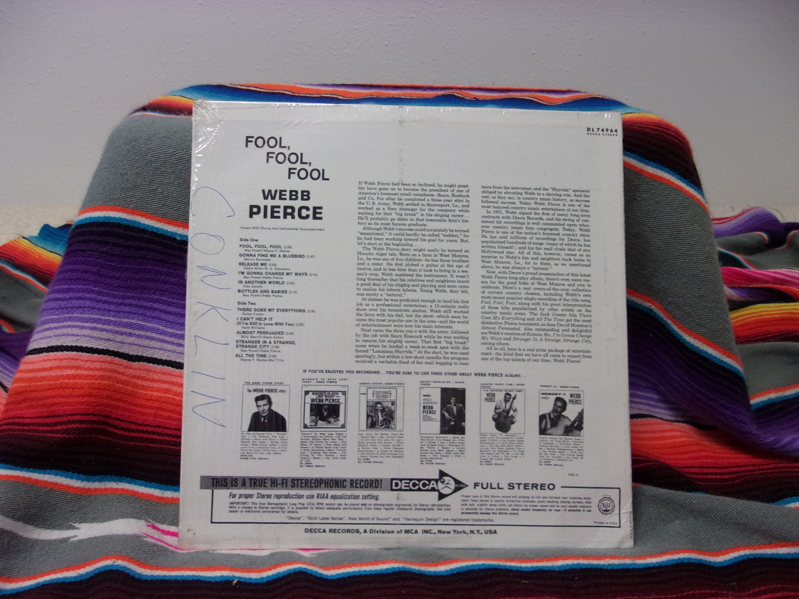 Keywords: Webb Pierce, Fool, Fool, Fool, 1968, original vinyl, LP, country music, vintage vinyl, rare vinyl